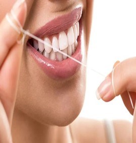 - نخ را بهآرامی بین دو دندان وارد کنید؛ از فشار ناگهانی خودداری کنید تا لثه آسیب نبیند.